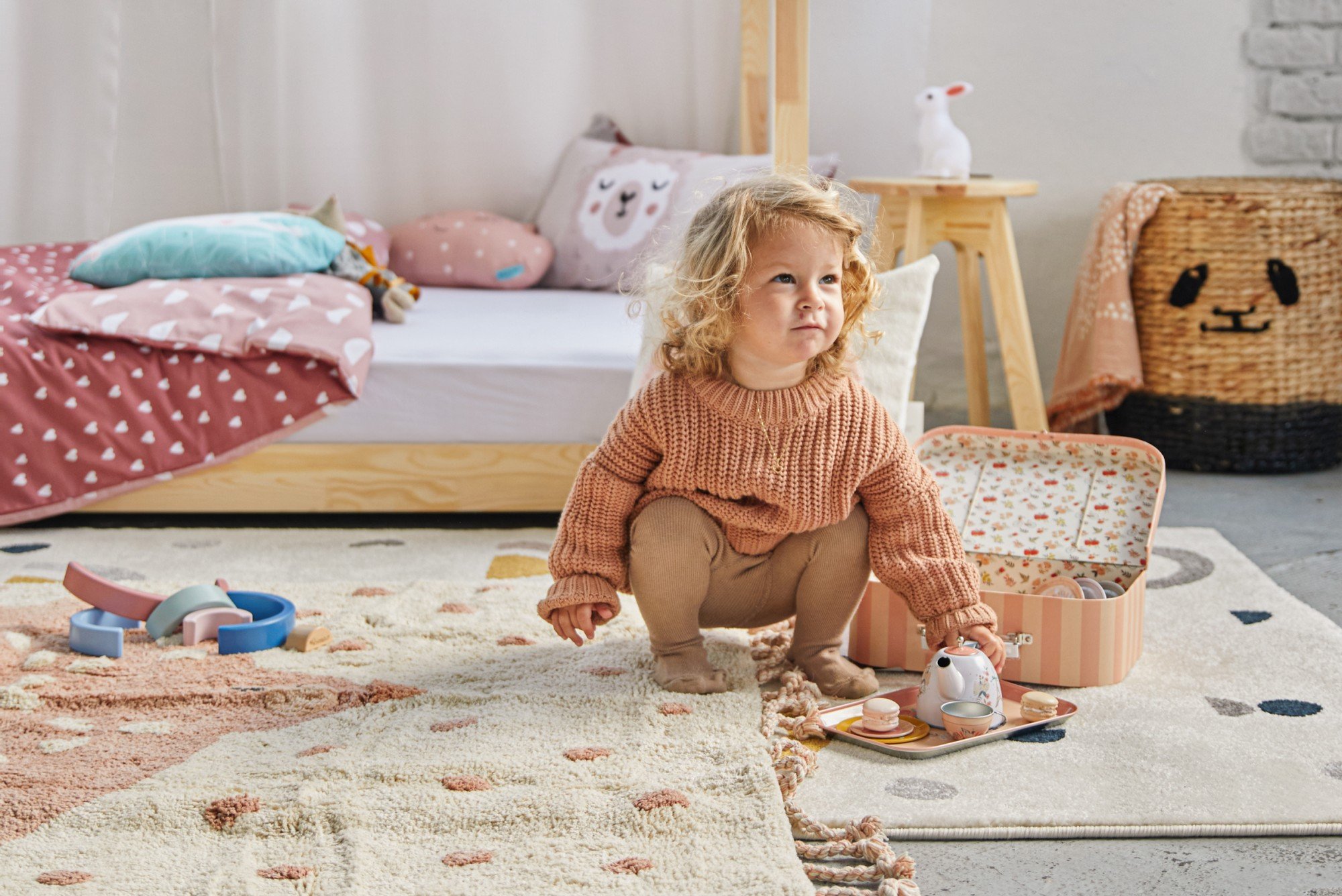 Kambarys mergaitei kūdikiui pirmiausia skirtas miegui, vystyklų keitimui ir ankstyvajai žaidimų veiklai. Svarbiausia – praktiškumas, saugios medžiagos ir tvarka.