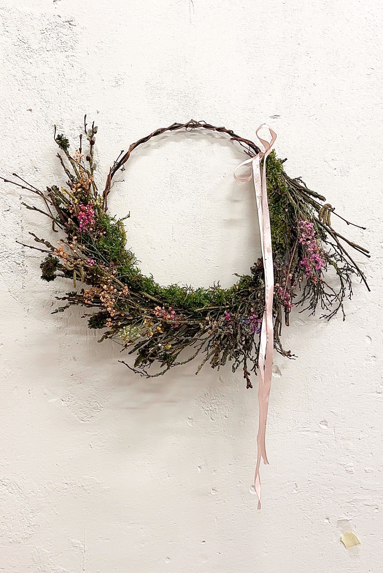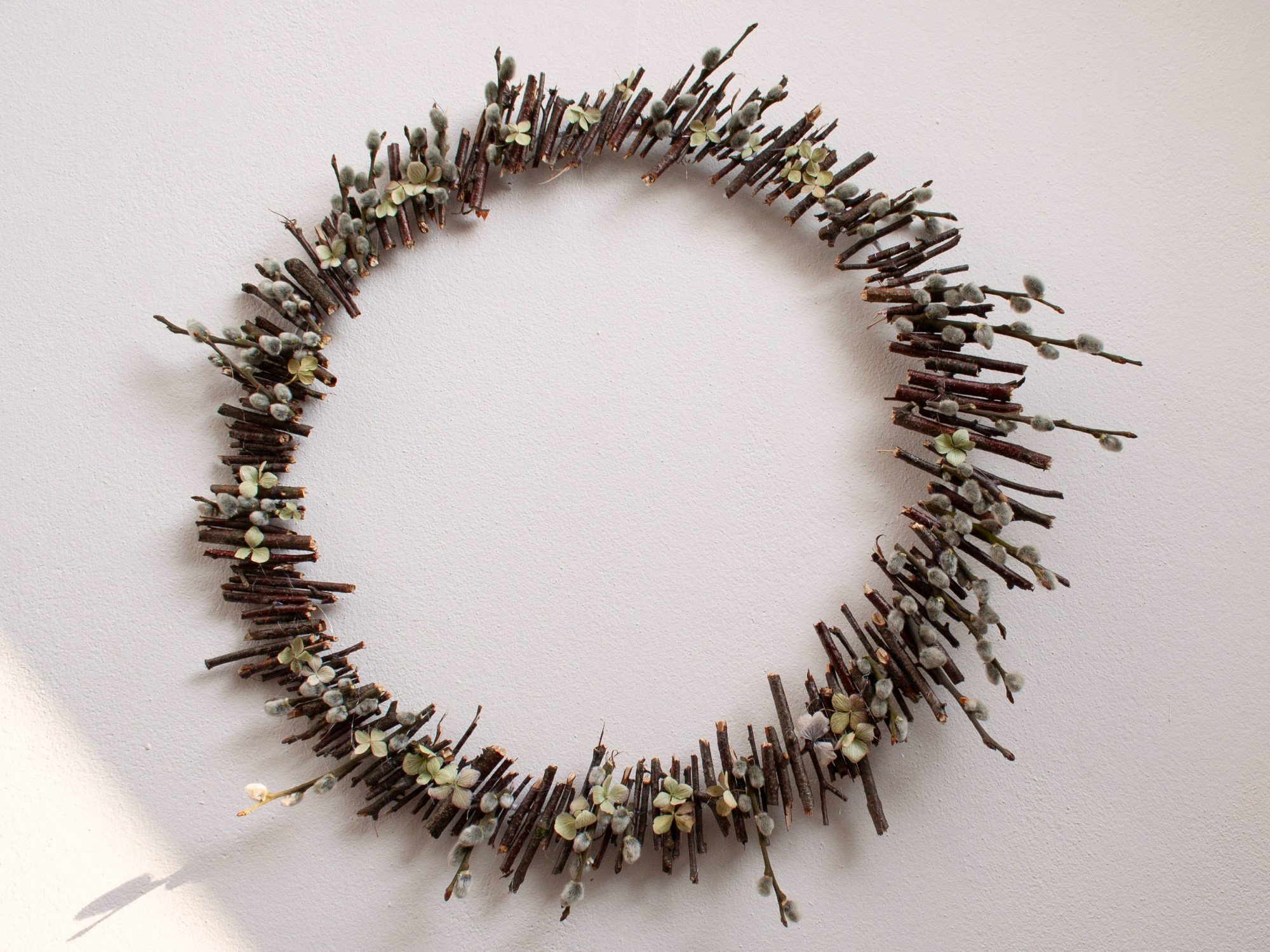 Pavasarinis vainikas iš mėlynių šakelių ir gubojos