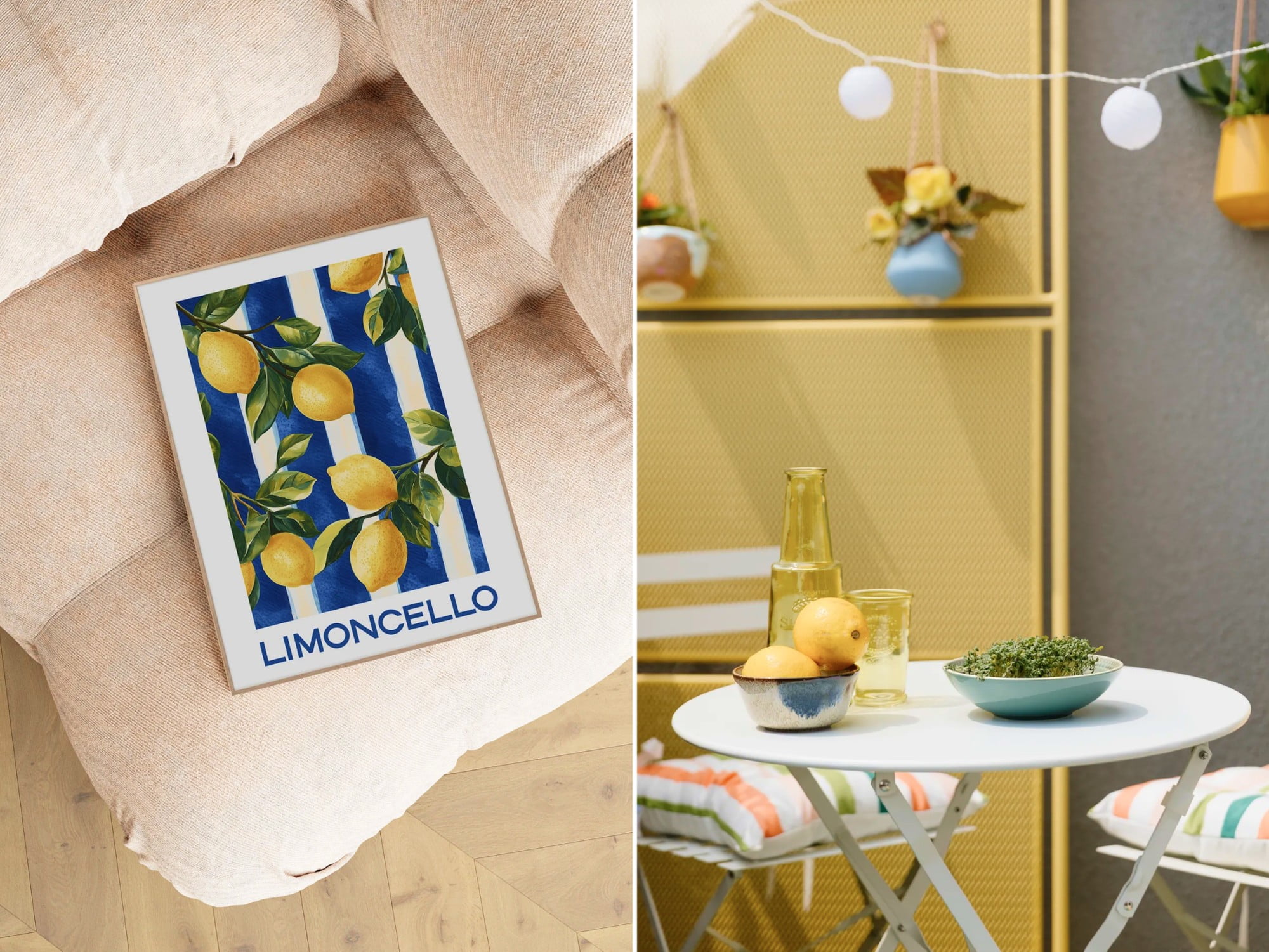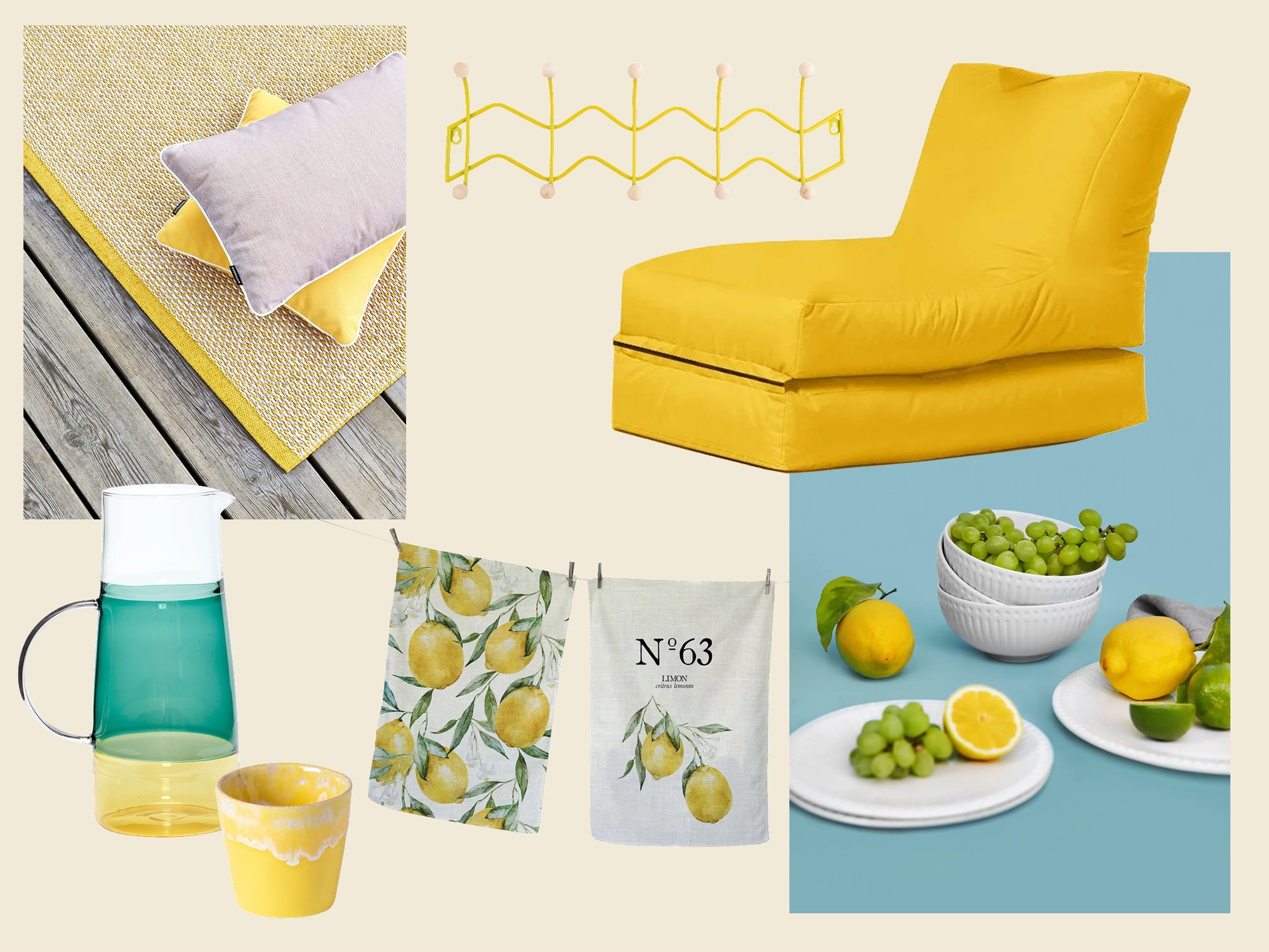 Šiais metais citrinos tinka ne tik stiklinei su ledu – jos taip pat puikuojasi ant stalo, audinio ar sienos. Jos suteikia spalvų, šviesumo ir geros nuotaikos. Jos tinka kiekvienam interjerui ir terasai, kuri nebijo vasaros.