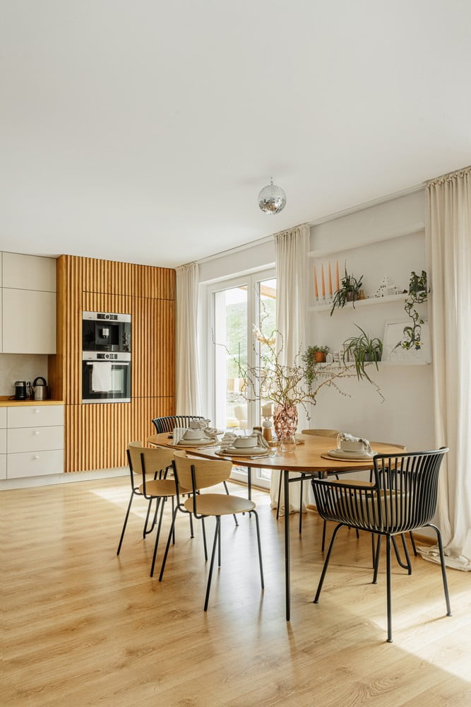 Žvilgtelėkite į jos elegantiškus namus, kuriuose dominuoja kreminiai atspalviai ir šviesi mediena, ir pasisemkite įkvėpimo iš panašios dvasios interjero dizaino patarimų.
