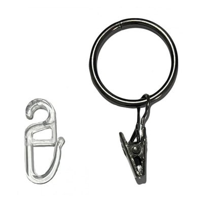Užuolaidų žiedai su kabliuku10 vnt., iš metalo/iš plastiko, juodos spalvos
