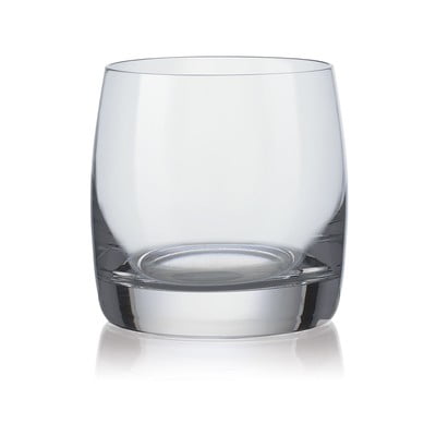 Kokybiška trumpa stiklinė gėrimui, kurios papildomas privalumas yra tai, kad ji neturi pagrindo.