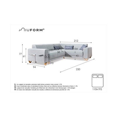 Kampinė sofa Classy SophieSulankstoma/su sandėliavimo vieta, su dešiniuoju kampu/„L“ formos, antracito spalvos, keturvietė, plotis 250 cm, gylis 212 cm, sėdynės gylis 58 cm