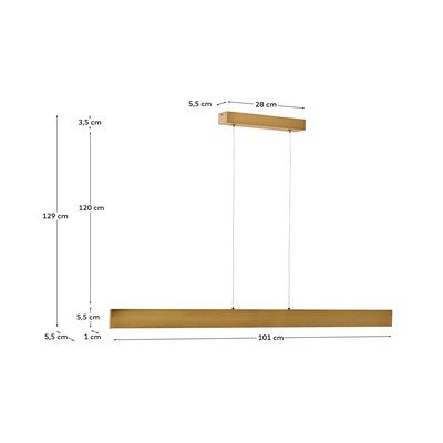 Kabantis šviestuvas BoadellaLED, su metaliniu gaubtu, iš metalo, auksinės spalvos, 5,5x101 cm, aukštis 129 cm