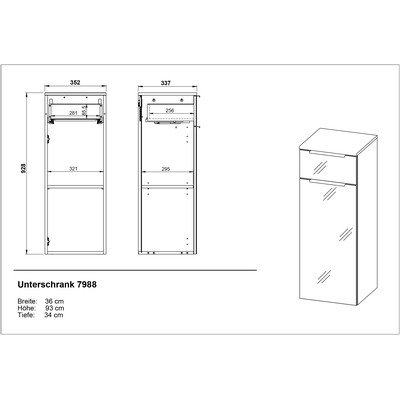 Aukšta/pakabinama/siauraIš medžio drožlių plokštėsPaviršiaus apdaila: Melaminas/paviršiaus apdaila: stiklasSu blizgiu paviršiumiPilkos spalvosPlotis 36 cmAukštis 93 cmGylis 34 cm