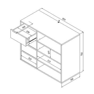 AtviraIš medžio drožlių plokštėsPaviršiaus apdaila: MelaminasBaltos spalvos/rudos spalvos/natūralios spalvosPlotis 185 cmAukštis 182 cmGylis 50 cm