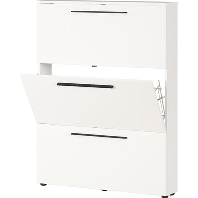Spintelė batams UtahAtlenkiama, iš medžio drožlių plokštės, paviršiaus apdaila: Melaminas, su matiniu paviršiumi, baltos spalvos, plotis 100 cm, aukštis 129 cm, gylis 19 cm