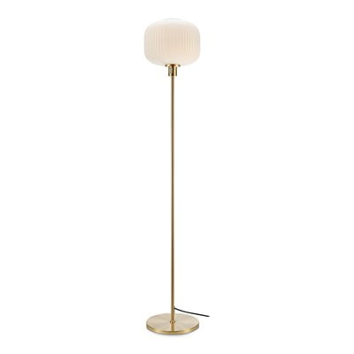 Pastatomas šviestuvas SoberSu stiklo gaubtu, baltos spalvos/auksinės spalvos, aukštis 141 cm