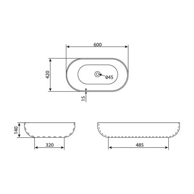 Iš keramikos, baltos spalvos, plotis 60 cm, gylis 42 cm, aukštis 14 cm