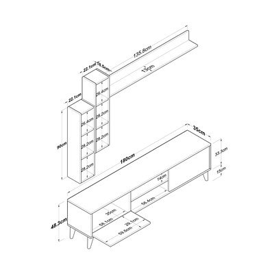Iš riešutmedžioIš MDF plokštėsPaviršiaus apdaila: MelaminasBaltos spalvos/natūralios spalvosPlotis 180 cmAukštis 48 cmGylis 35 cm