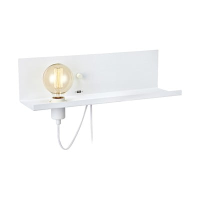Sieninė lempa MultiSu USB portu/su lentyna, su kištuku, iš metalo, baltos spalvos, 17,5x50 cm, aukštis 13,5 cm