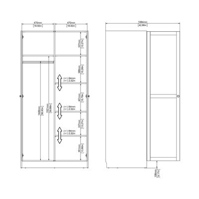 Drabužių spinta BillundIš medžio drožlių plokštės, paviršiaus apdaila: Popierius, su matiniu paviršiumi, baltos spalvos, plotis 99 cm, aukštis 200 cm, gylis 62 cm