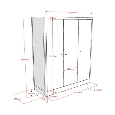 Iš buko masyvo, paviršiaus apdaila: spalvotas, baltos spalvos, plotis 146 cm, aukštis 190 cm, gylis 55 cm