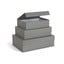 Rinkinį sudaro 3 sukraunamos dėžės su atlenkiamais dangčiais su magnetiniu uždarymu.