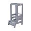 Montessori mokymosi bokštas iš "Meowbaby". Jo reguliuojama platforma be įrankių leidžia vaikams saugiai įsitraukti į virtuvės veiksmą.