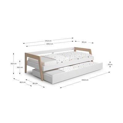 Baltos spalvos ištraukiama iš pušies masyvo vaikiška lova su sandėliavimo vieta su lovos grotelėmis 90x200 cm Carrie – Marckeric