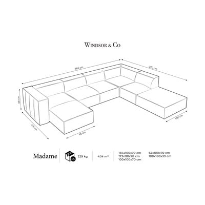 Iš šenilinio audinio, su dešiniuoju kampu/„U“ formos, atsparus vandeniui, pilkai žalios spalvos, kito dydžio, plotis 365 cm