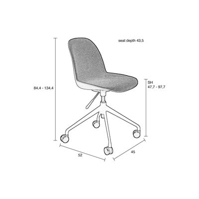 Zuiver biuro kėdė Albert yra paprasto dizaino, kuri puikiai tiks bet kuriame biure. Be to, ji turi reguliuojamą sėdynės aukštį nuo 47,7 iki 51,7 cm, todėl kėdės aukštį galėsite pritaikyti pagal savo poreikius. Atlošas yra fiksuotas, be galimybės užfiksuoti.