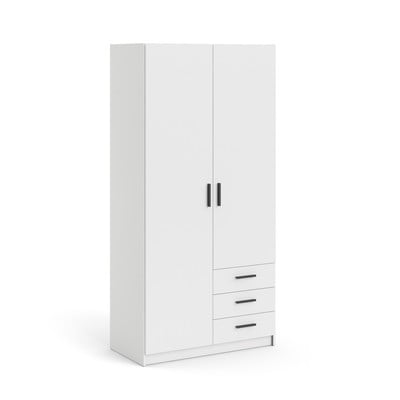 Drabužių spinta SprintIš medžio drožlių plokštės, paviršiaus apdaila: Folija, su matiniu paviršiumi, baltos spalvos, plotis 99 cm, aukštis 200 cm, gylis 50 cm