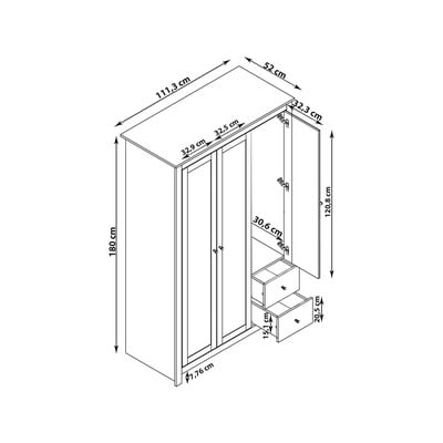 Iš ąžuolo, iš MDF plokštės, paviršiaus apdaila: Folija, pilkos spalvos, plotis 112 cm, aukštis 180 cm, gylis 52 cm