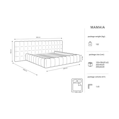 200x200 cm, su sandėliavimo vieta, su lovos grotelėmis, audiniu dengta, kreminės spalvos
