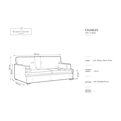 Geltonos spalvos, dvivietė, plotis 170 cm, gylis 104 cm, sėdynės gylis 66 cm