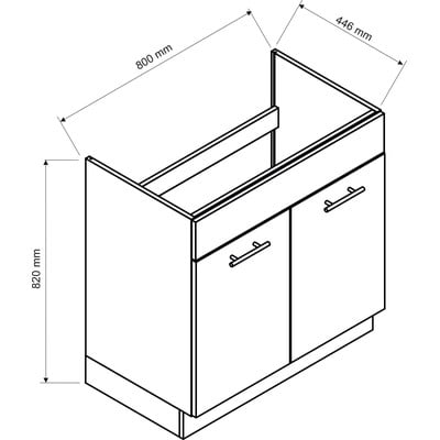 Pats korpusas yra baltos spalvos ir pagamintas iš 16 mm storio laminuotos plokštės. Kadangi spintelės tiekiamos atskirai, jų išdėstymo tvarką galite išdėstyti taip, kaip jums patinka. Jei spintelės atidaromos į šonus, taip pat galite pasirinkti, ar jos atsidaro kairėje, ar dešinėje pusėje.