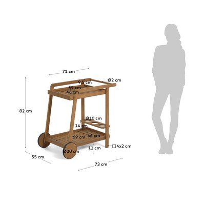 Visa konstrukcija pagaminta iš akacijos medienos. Paviršius apdorotas aliejumi, todėl yra atsparesnis drėgmei ir dulkėms. Kartu išsiskiria akacijos medžio masyvo grožis. Vežimėlis tinka naudoti patalpose ir lauke.