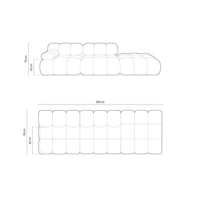 Iš boucle, su dešiniuoju kampu, antracito spalvos, keturvietė, plotis 282 cm, gylis 94 cm, sėdynės gylis 62 cm