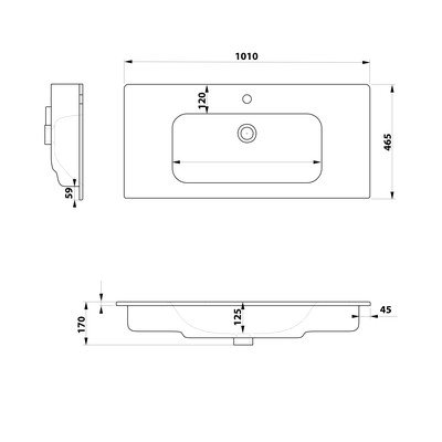 Iš keramikos, baltos spalvos, plotis 101 cm, gylis 46,5 cm, aukštis 17 cm