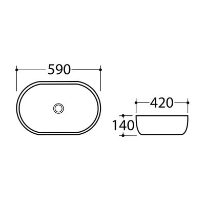 Iš keramikos, pilkos spalvos, plotis 59 cm, gylis 42 cm, aukštis 14 cm