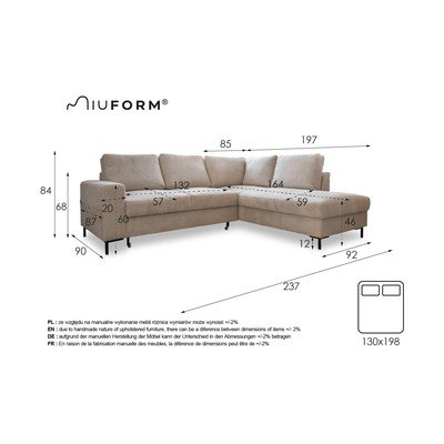 Kampinė sofa Lofty LillyIš kordinio velveto, sulankstoma/su sandėliavimo vieta, su dešiniuoju kampu/su gultu, smėlio spalvos, trivietė, plotis 236 cm, gylis 148 cm, sėdynės gylis 57 cm