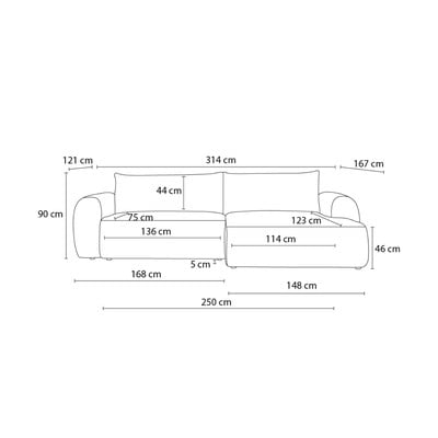 Kampinė sofa LucienIš kordinio velveto, sulankstoma/su sandėliavimo vieta, su kairiuoju kampu/su gultu, tamsiai pilkos spalvos, keturvietė, plotis 314 cm, gylis 167 cm, sėdynės gylis 75 cm