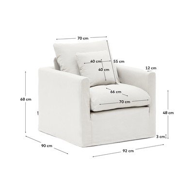 Krėslas NoraIš lino, su nuimamu užvalkalu, baltos spalvos