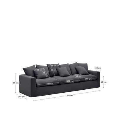 Sofa NoraIš lino, su nuimamu užvalkalu, antracito spalvos, kito dydžio, plotis 340 cm