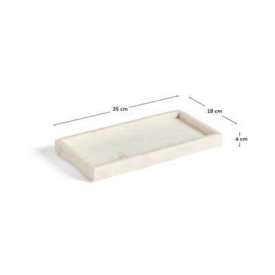 Kave Home dekoratyvinis padėklas Serela išsiskiria tiesiomis linijomis ir aiškiais kampais, kurie suteikia jam elegantišką ir kartu išskirtinę išvaizdą. Jis pagamintas iš marmuro, o kiekvienas gaminys yra unikalus, turintis savitą raštą ir gysleles, atspindinčias akmens autentiškumą.