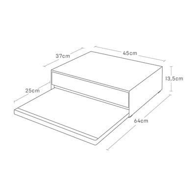 Išnaudokite virtuvės erdvę su šia lentyna su stalčiumi, kuri akimirksniu išplečia darbo erdvę, kai dalį jos užima smulkūs prietaisai. Virš ir po stalčiumi montuojamos lentynos ilgį galima reguliuoti nuo 39 iki 64 cm. Viršutinės plokštės keliamoji galia yra 17 kg, o stalčius ir lentyna gali nešti iki 3 kg apkrovą, iš kurių bent 2 kg apkrova tenka viršutinei plokštei.