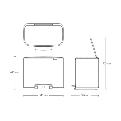 Kompaktiškas dizainas užtikrina, kad šiukšliadėžė tilptų mažesnėse erdvėse, pavyzdžiui, prie pat sienos ar kampe. Be to, šiukšliadėžė turi minkštą, neslystantį pagrindą, kad nesibraižytų grindys.