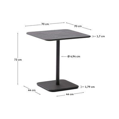 Kave Home sodo valgomojo stalas Brai. Dėl tvirtos cinkuoto plieno konstrukcijos jis tinka naudoti tiek viduje, tiek lauke.