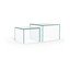 Stikliniai kavos staliukai Dice iš Actona, dviejų komplektų. Dėl kintamo dizaino staliukus galima įvairiai išdėstyti.