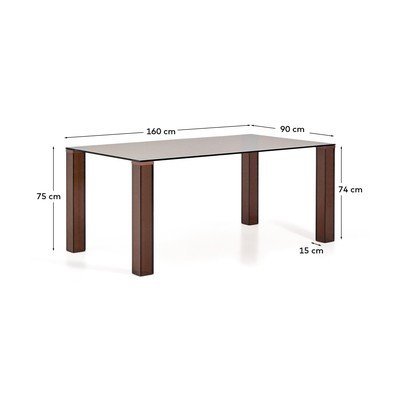 Kave Home valgomojo stalas Adularia. Minimalistinis dizainas su tiesiomis linijomis ir grūdinto stiklo stalviršis vizualiai praplės erdvę, suteikdamas jai modernumo.