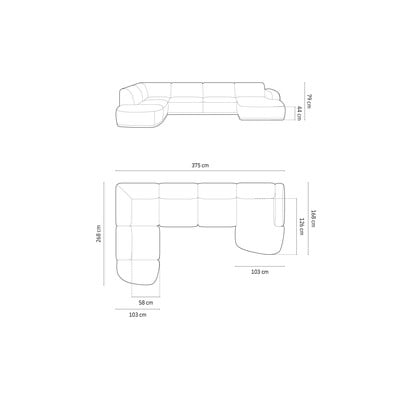 Kampinė sofa ErinIš velveto, „U“ formos, smėlio spalvos, kito dydžio, plotis 375 cm