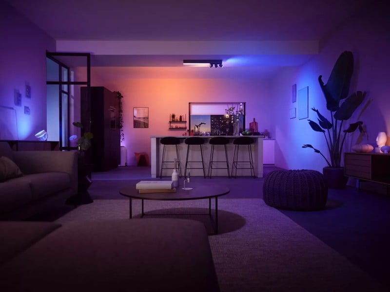 - Lengva valdyti ir prijungti: Sujungti iki 10 išmaniųjų šviestuvų ir valdyti juos viename kambaryje tiesiai iš savo mobiliojo prietaiso per "Hue Bluetooth" programėlę. Sujungus su "Amazon Echo" arba "Google Nest", šviesas galite valdyti balsu. Norint jas įjungti, išjungti arba reguliuoti spalvas, užtenka paprastų komandų.