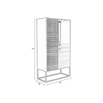 Iš rotangoIš MDF plokštėsPaviršiaus apdaila: lakuotasJuodos spalvos/natūralios spalvosButelių skaičius 16Juodos spalvos/natūralios spalvosPlotis 80 cmAukštis 175 cmGylis 38 cm