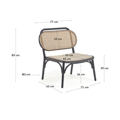 Modernus ir kartu šiek tiek retro - toks yra "Kave Home Doriane" natūralus fotelis. Šio fotelio konstrukcija pagaminta iš ąžuolo masyvo, kurį papildo rankomis pintas rotango atlošas ir sėdynė su maloniu lino efekto minkštu paviršiumi, kuris taip pat padengtas vandenį atstumiančiu audiniu. Šiai kėdei gaminti naudojama mediena yra tausojančiai išgaunama aplinkai nekenksmingu būdu, tai patvirtina FSC sertifikatas. Padovanokite savo namams natūralų dizaino kūrinį.