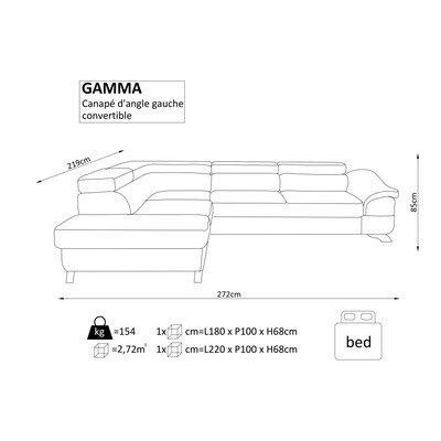 Sulankstoma, juodos spalvos, plotis 219 cm, sėdynės gylis 57 cm