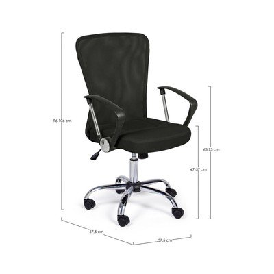 Iš audinio, su ratukais/reguliuojamo aukščio/su porankiais, juodos spalvos, keliamoji galia 110 kg, sėdynės aukštis 57-57 cm