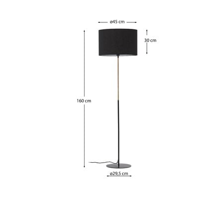 Kave Home grindų šviestuvas "Canar" - elegantiškas modernaus interjero priedas. Jame derinama metalinė konstrukcija su natūralaus rotango detalėmis ir juodo audinio gaubtu, kuris sukuria malonų prislopintą apšvietimą. Šviestuvas suderinamas su E27 lemputėmis, kurių maksimali galia yra 25 W. Lemputė į komplektą neįtraukta.