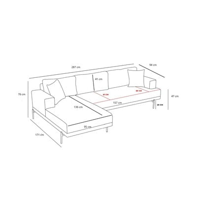 Su dešiniuoju kampu/su gultu, antracito spalvos, keturvietė, plotis 287 cm, gylis 171 cm, sėdynės gylis 60 cm
