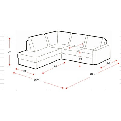 Su kairiuoju kampu/„L“ formosAntracito spalvosTrivietėPlotis 274 cm